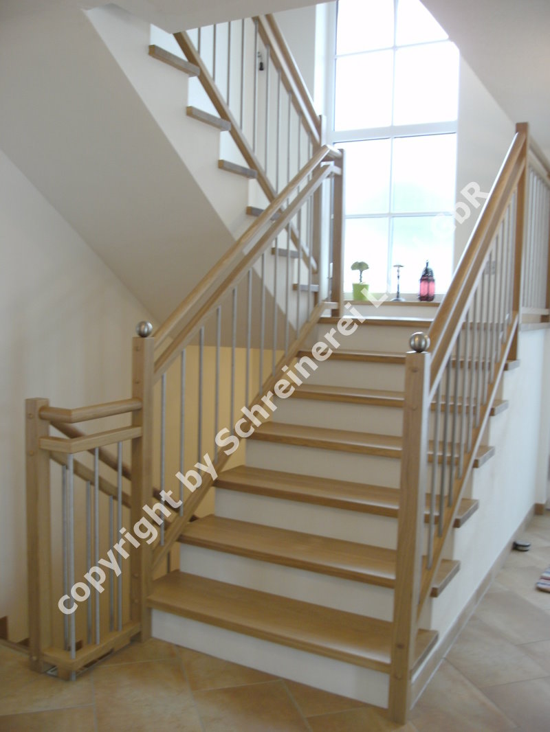Betontreppe mit Ahornstufen belegt, Geländer mit Obergurt